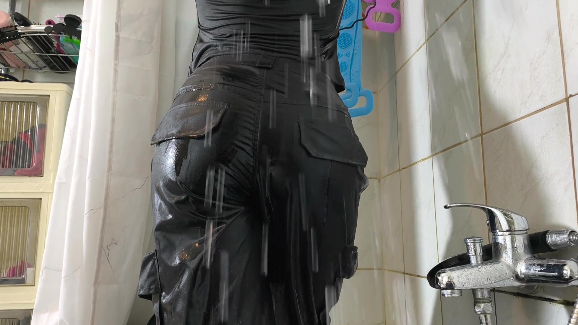 Girls gets wet in pink